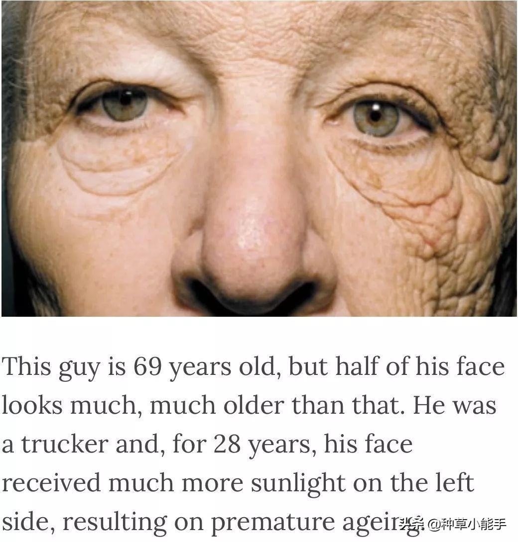 “上圖這個人69歲,因為當(dāng)了28年的卡車司機,他的左臉接受了更多的日照,導(dǎo)致過早衰老?!?/strong>