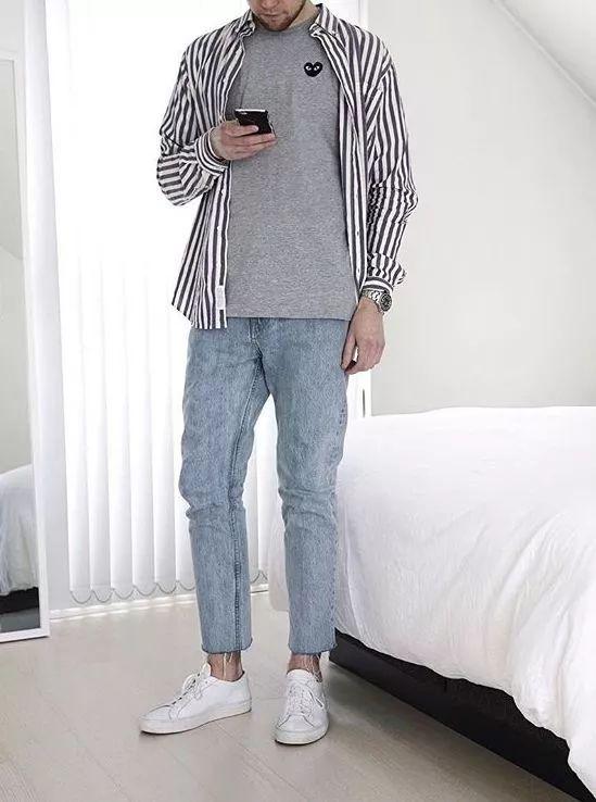 襯衫敞開(kāi)穿比較好看些,如果是條紋襯衫搭配的時(shí)候注意一下條紋顏色與身上的其他單品好是是鄰近色或者顏色呼應(yīng)
