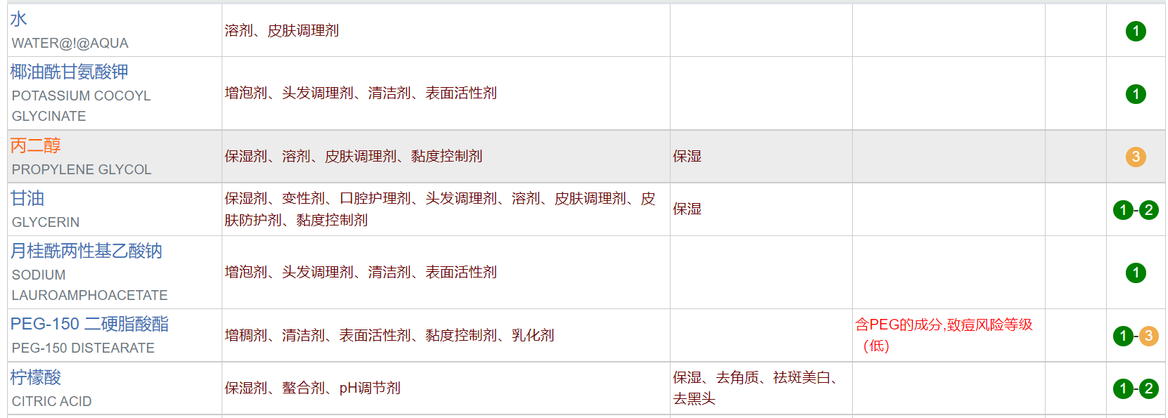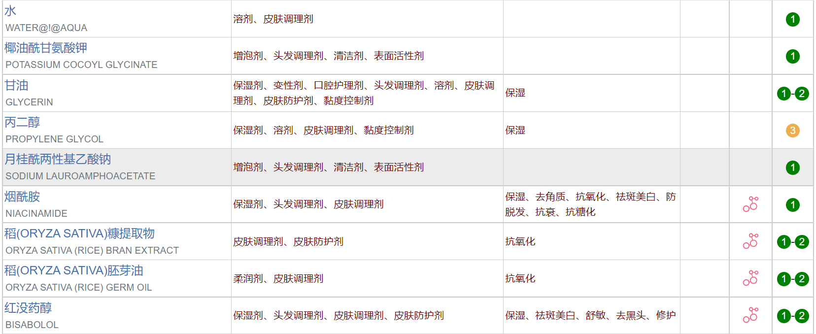 成分方面,基本上和旁氏米粹差不多,都是椰油酰甘氨酸鉀、月桂酰兩性基乙酸鈉的表面活性劑,不過添加的各種植物成分沒有米粹多,但個(gè)人覺得這個(gè)香味更好聞一些。度也有四顆星,只要不是特別敏感的皮膚,用起來無壓力。