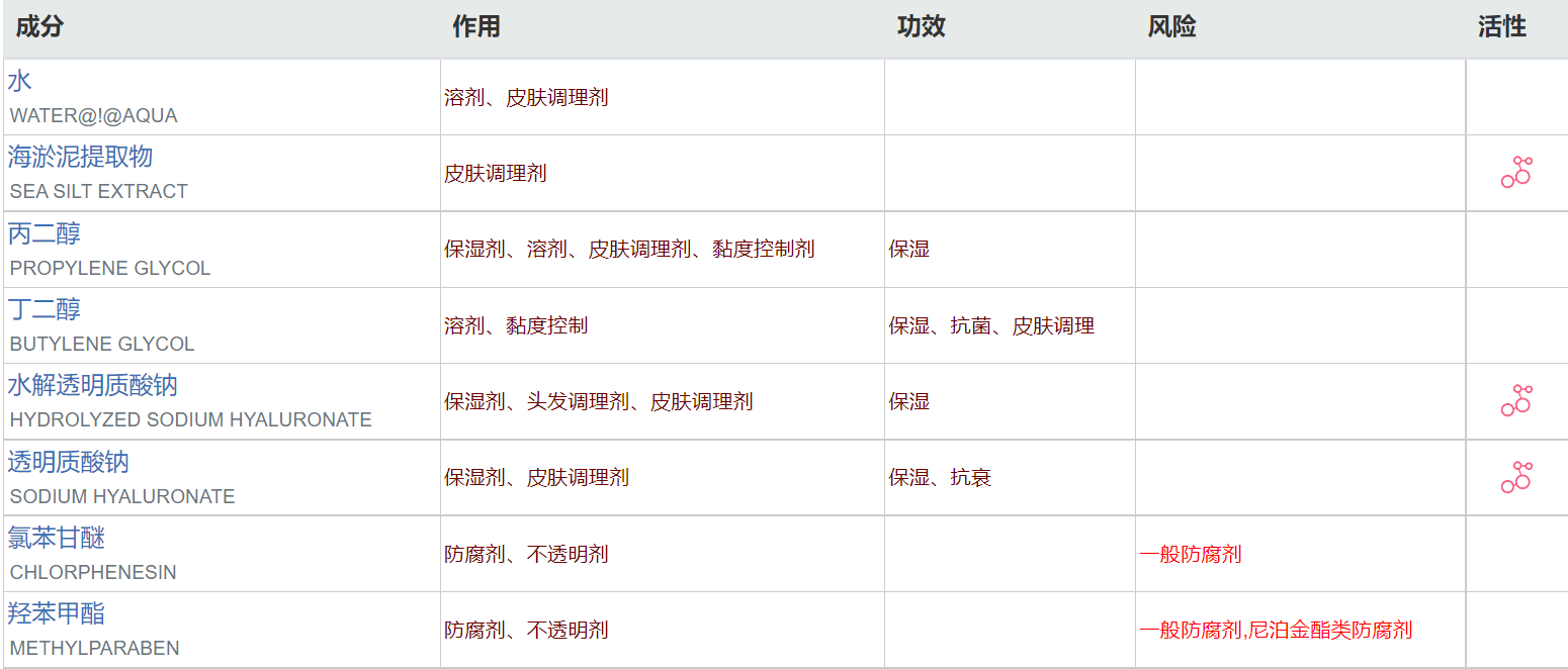 成分方面,除了水、丁二醇、丙二醇兩種保濕劑,還有雙重玻尿酸,保濕方面沒有問題。不過其含有少量防腐劑,皮膚敏感人群需要注意。
