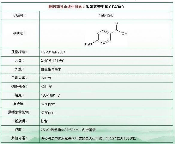 PABA 對(duì)氨基苯甲酸 圖片來(lái)源:百度圖片