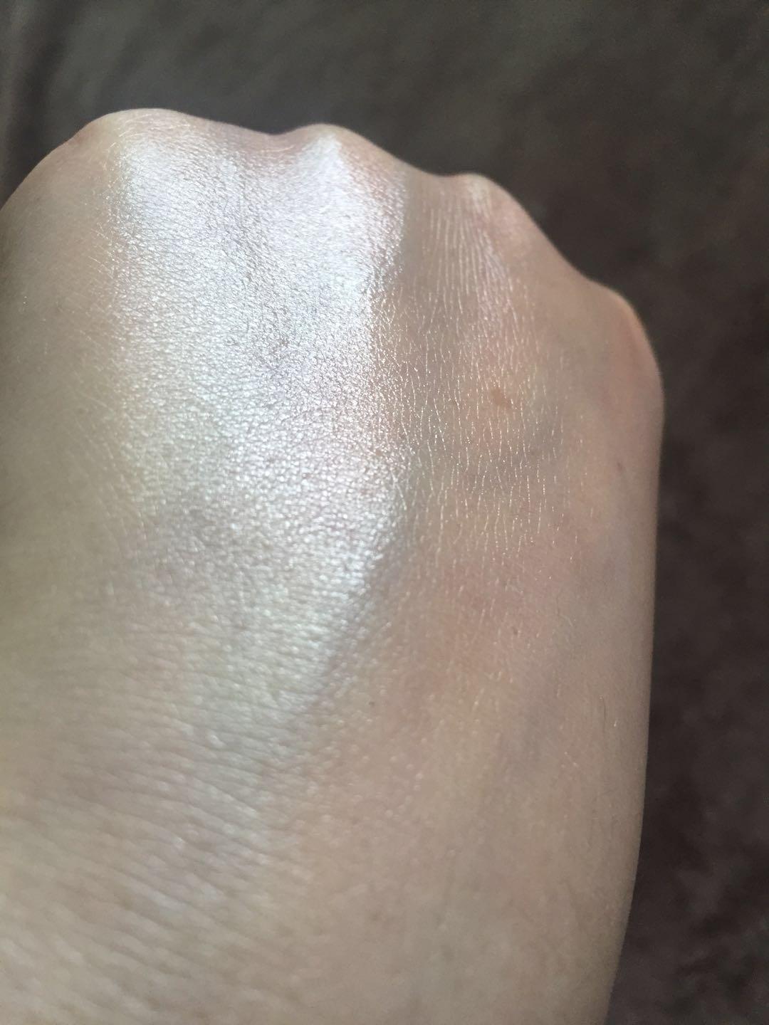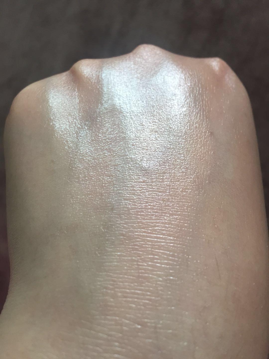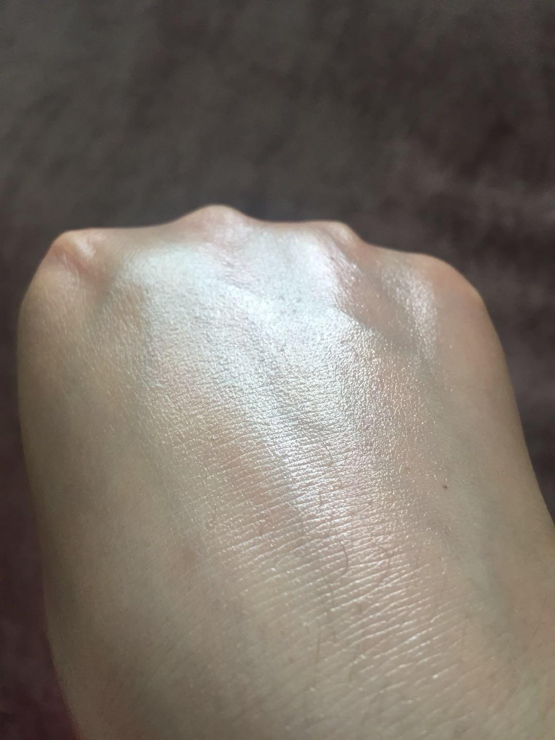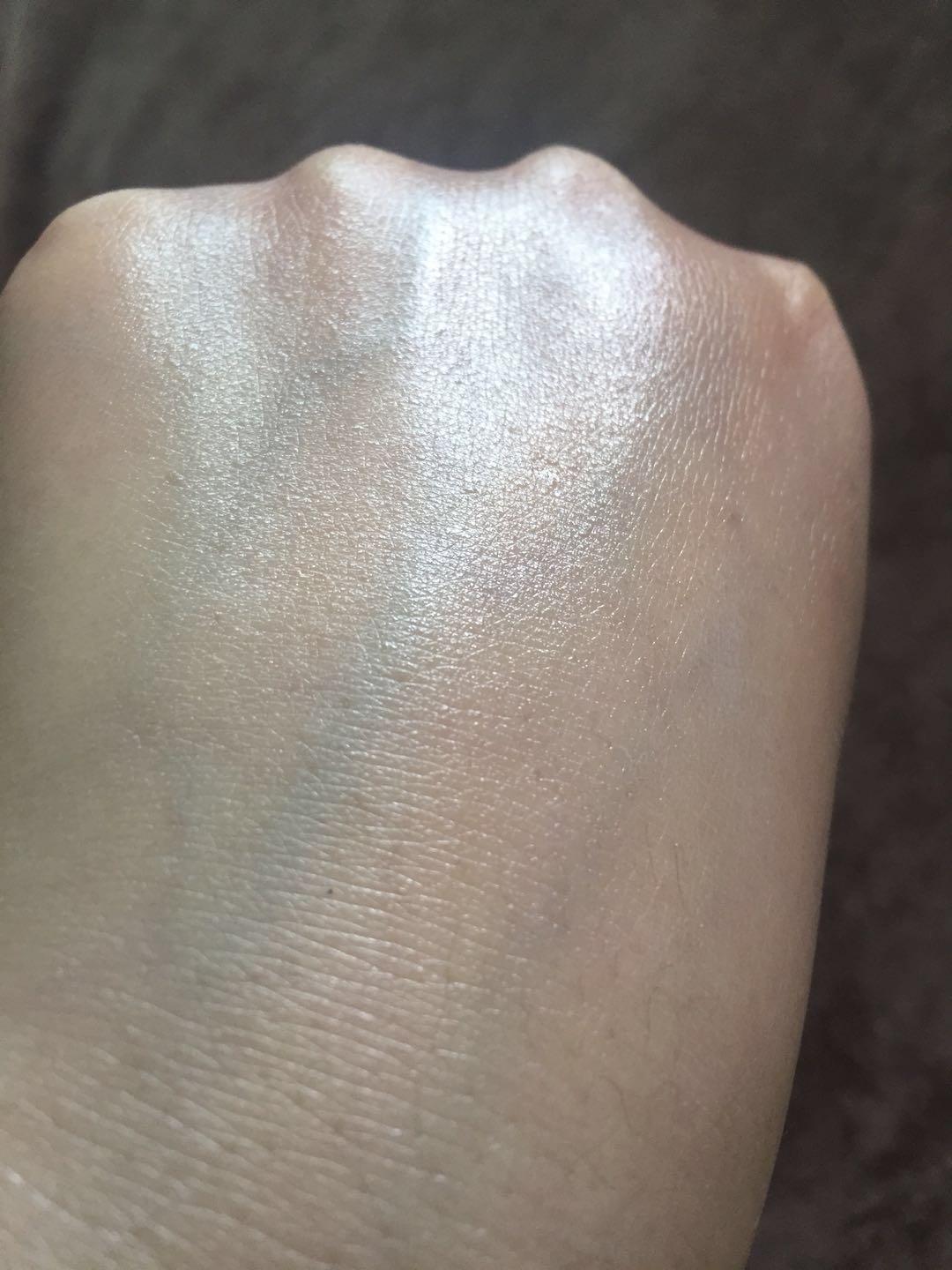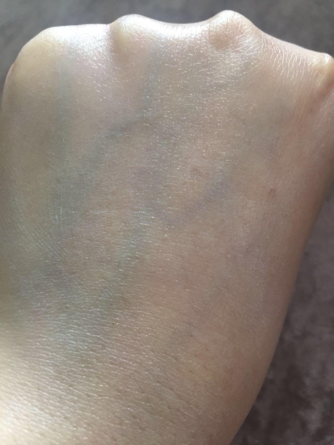 推開可看到質(zhì)地清薄,上臉會有一定的提亮膚色作用,稍微有一點點泛白跡象,但推開后泛白跡象消失