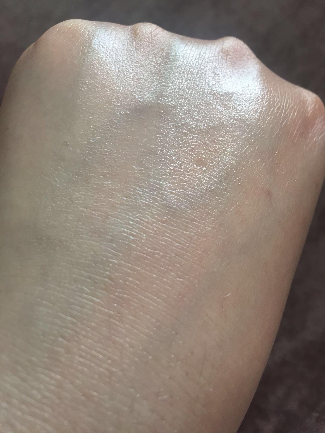 推開后,不泛白,很好推,立馬成膜,成膜后,皮膚表層會形成一層油膜,但不厚重,不悶