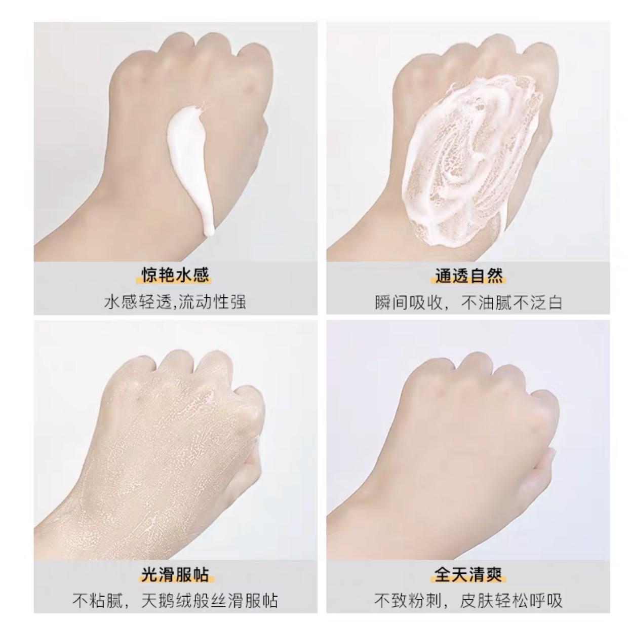 防曬霜屬于弱酸性、無著色、無香料,可以防水防汗防紫外線。水感質(zhì)地,涂抹上很輕薄、易吸收,用后完全不油膩,不浮白。同樣也是SPA50+,防曬果。