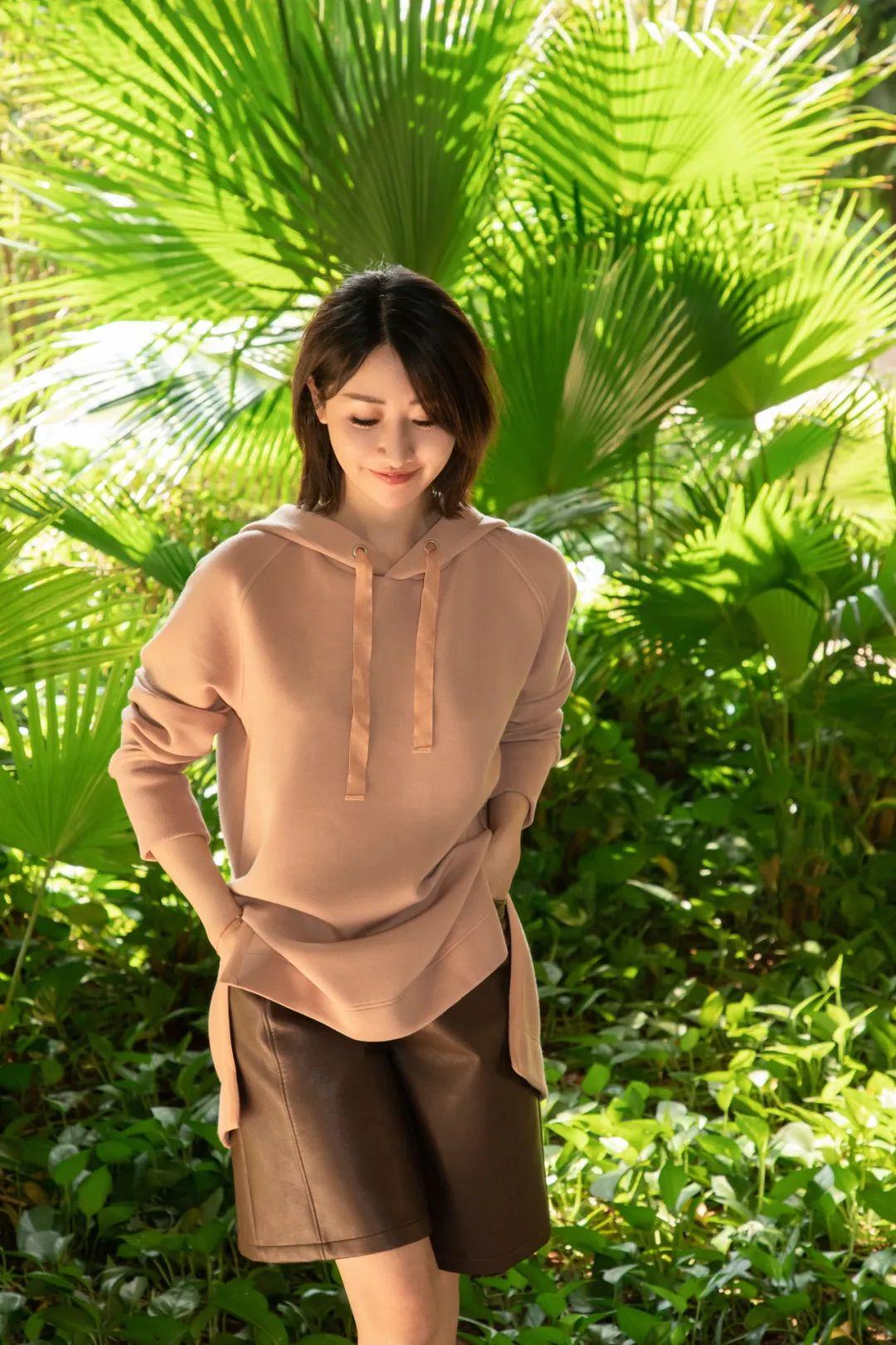隨手抓了件連帽衛(wèi)衣,搭配皮短褲就出門了,很自在。▼