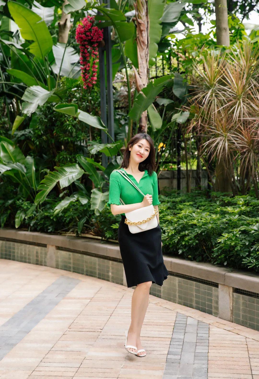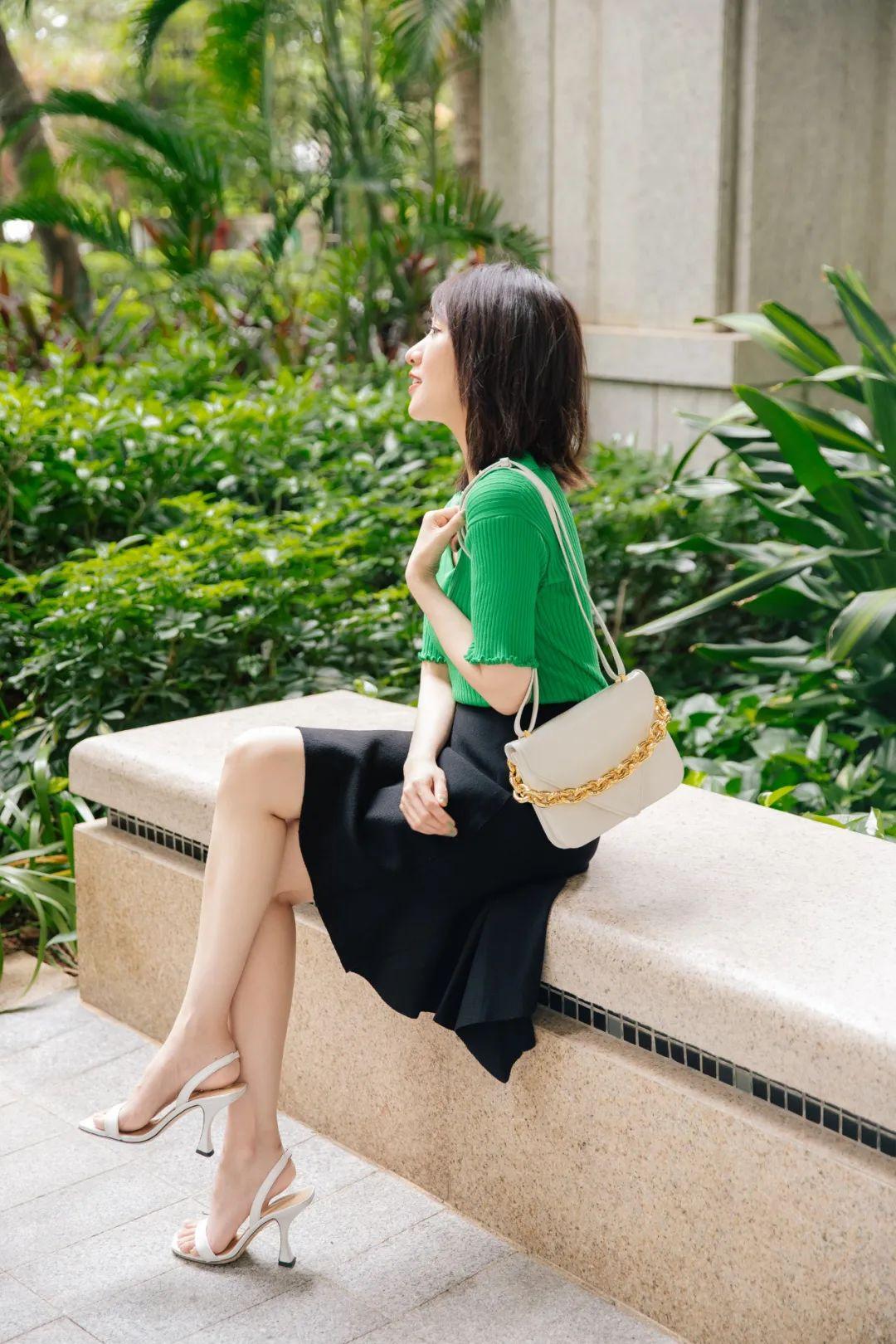 這身裙子鞋子的顏色都很“莫蘭迪”,本來擔(dān)心小黑包不搭,后來看圖發(fā)現(xiàn),黑頭發(fā)也有黑頭發(fā)的好處,剛好和包呼應(yīng)哈哈。▼