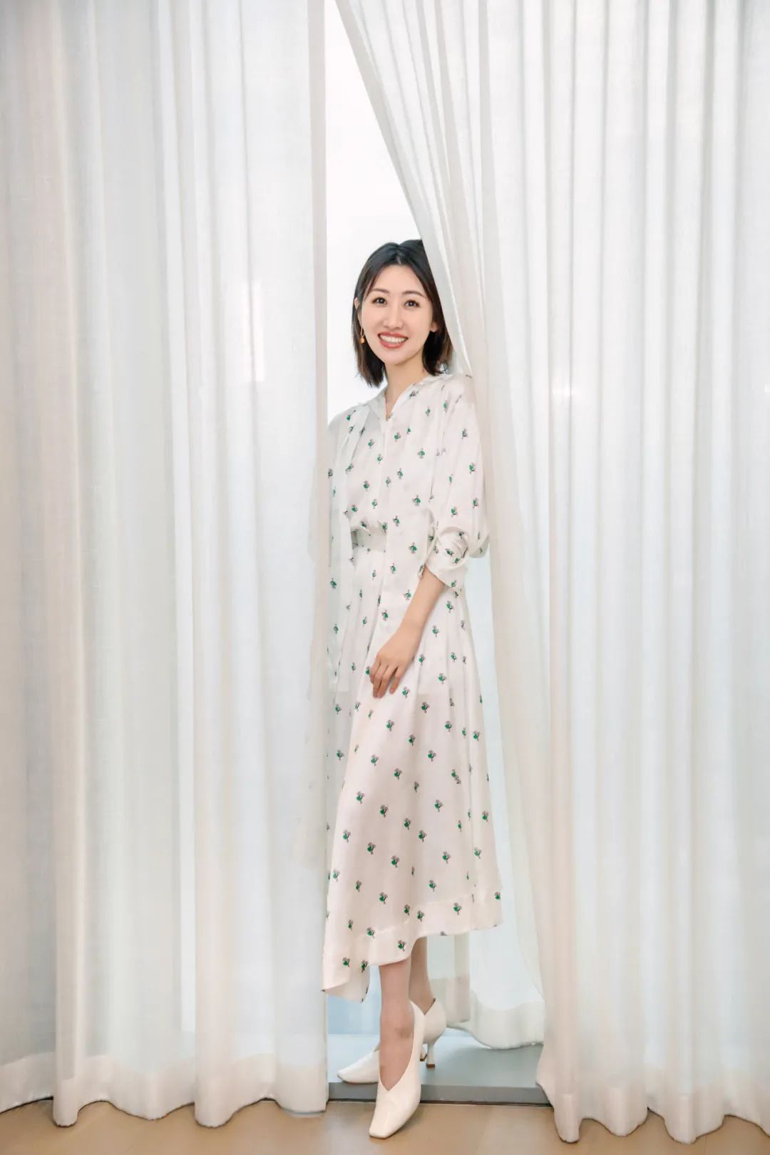 去每個(gè)女孩的家之前,我會(huì)根據(jù)她們家的風(fēng)格來搭配衣服,這樣拍出來的照片會(huì)更和諧一些。麥芽西家綠植特別多,所以我選了溫柔的小雞黃搭配薄荷綠。▼