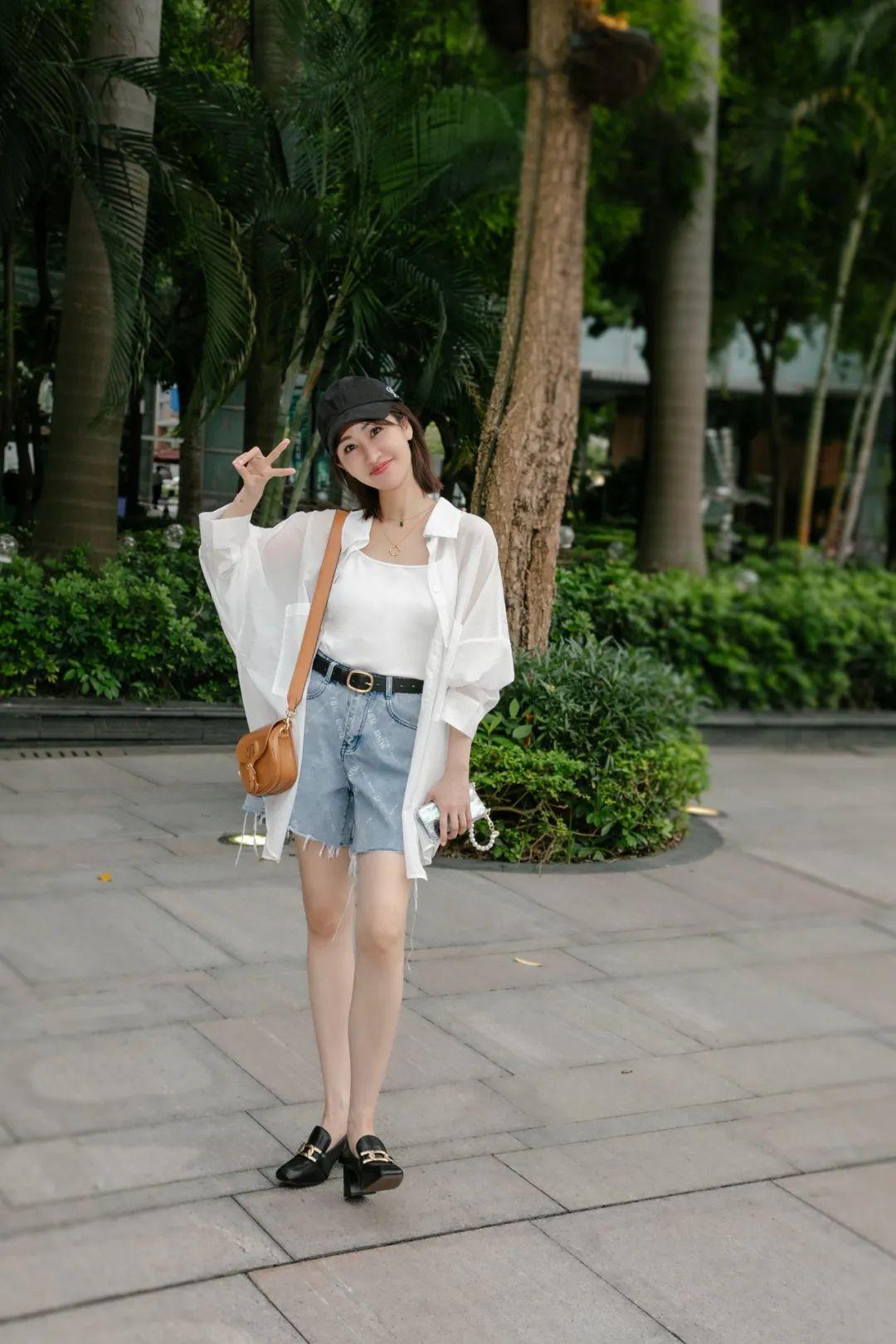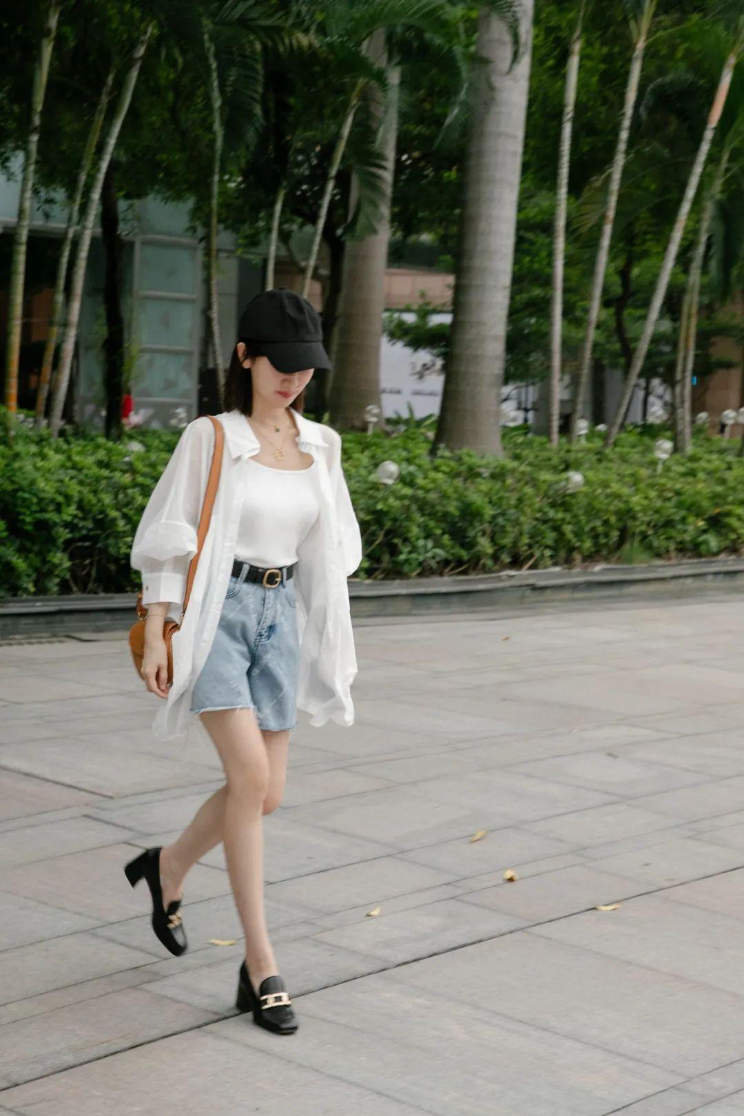 短褲我喜歡選寬褲管、長度在膝蓋上方幾厘米的,舒服的同時(shí)又能遮肉,還很顯腿細(xì)。▼