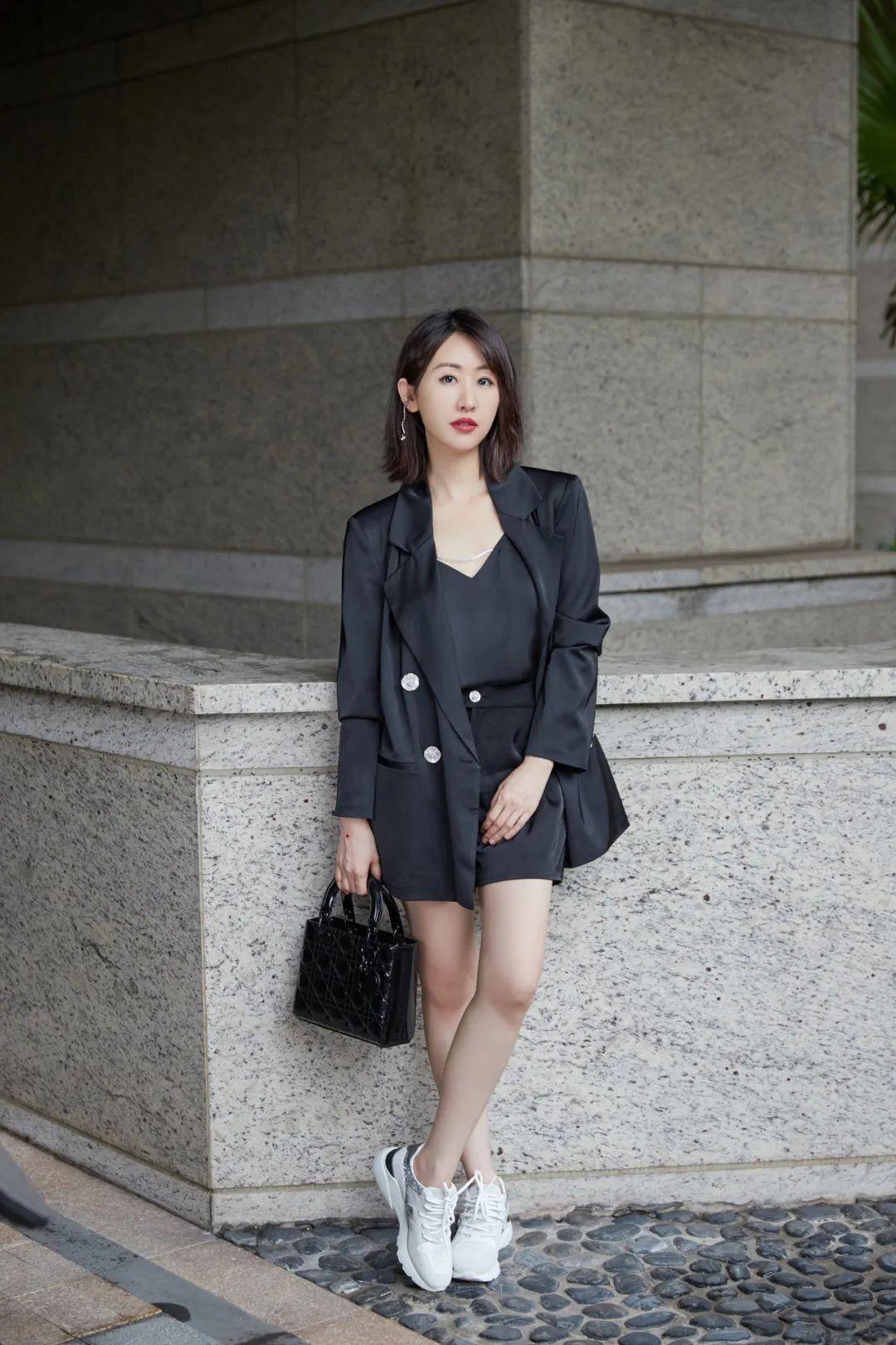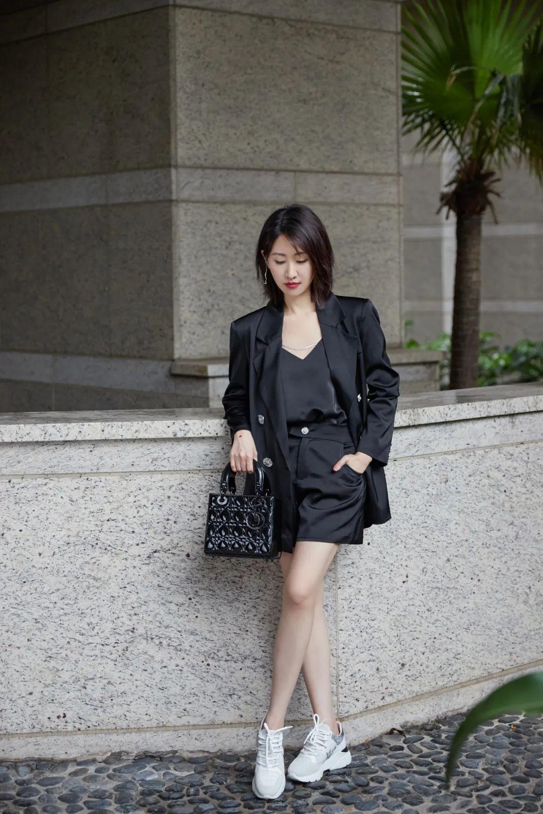 答案是:把高跟鞋換成了運(yùn)動(dòng)鞋,多了幾分休閑氣息。▼