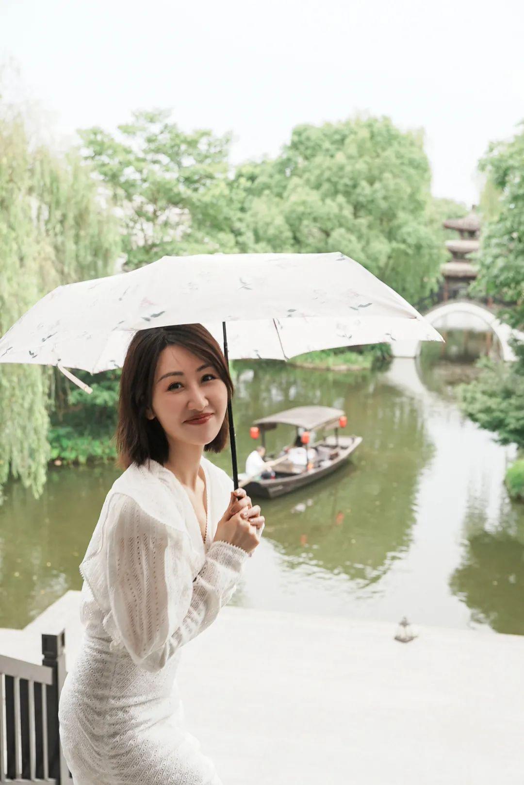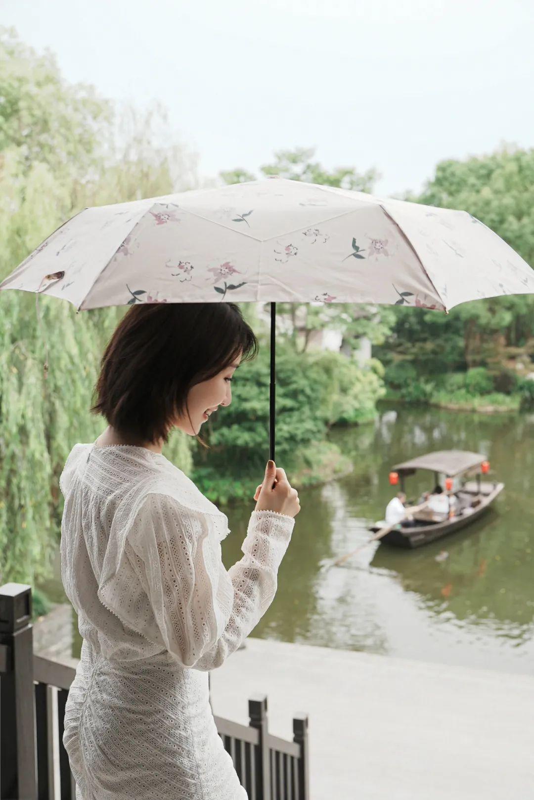 陽傘除了和衣服搭,素凈的花色和杭州的詩情畫意很配啊~▼