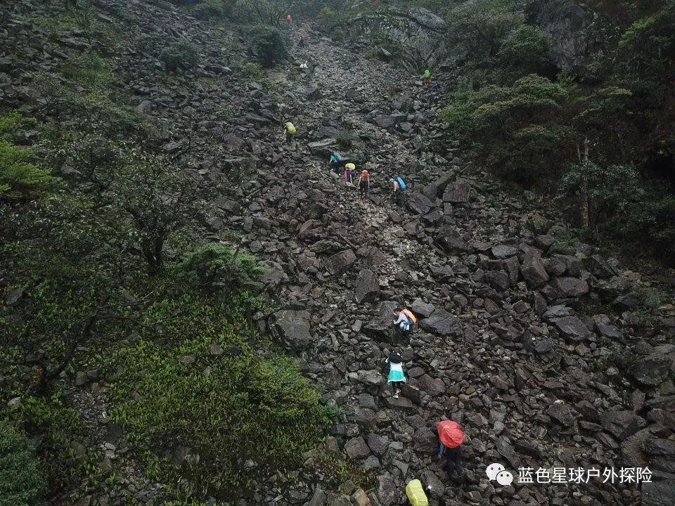 艱難的路途從遇到亂石坡開始,亂石坡顧名思義是由雜亂的石頭堆積起來的山坡,攀爬這個(gè)山坡需要很大的毅力和聽從領(lǐng)隊(duì)的指導(dǎo)。