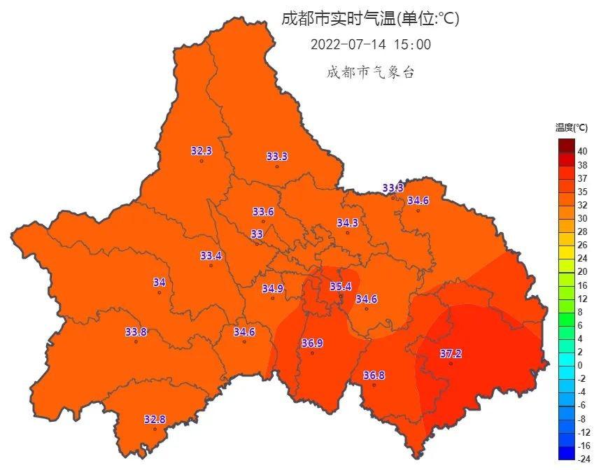 根據(jù)中央氣象臺(tái)的數(shù)據(jù)顯示,截至7月15日上午11點(diǎn),四川一共有24個(gè)地發(fā)布了高溫紅色預(yù)警信號(hào),涉及了宜賓、內(nèi)江、瀘州、自貢、樂山、雅安、達(dá)州、廣安、綿陽、德陽等10個(gè)城市。