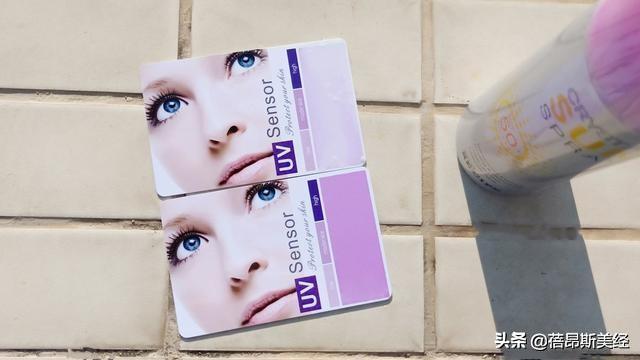 防曬指數(shù)很高,達(dá)到了SPF50+PA++++,用紫外線(xiàn)防曬測(cè)試卡測(cè)試。20分鐘后,沒(méi)涂噴霧的測(cè)試卡顯示出紫色,紫外線(xiàn)強(qiáng)度為中等偏上。而涂了防曬噴霧的測(cè)試卡是白色的。