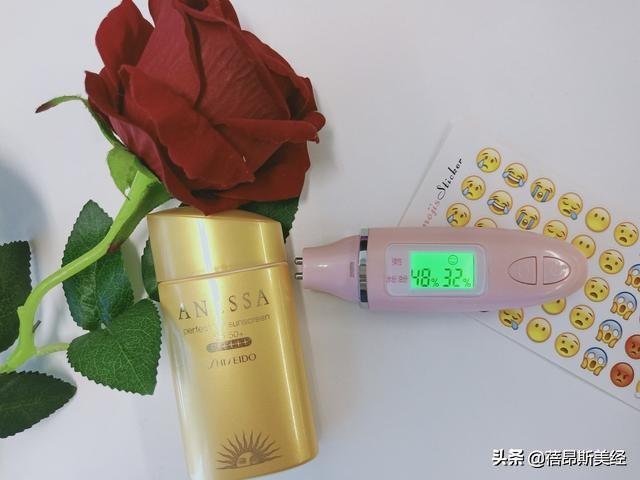 在涂防曬乳之前,手背的水分值為41%,涂了防曬乳10分鐘后,水分值為52%。補(bǔ)水性不錯(cuò),過(guò)了1小時(shí)再來(lái)測(cè),水分值為48%,保濕性是沒(méi)有問(wèn)題的。