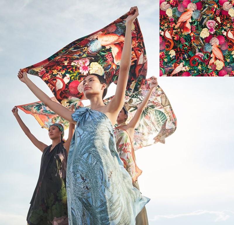 泰國知名的絲巾品牌,許多泰國模特和明星都很喜歡,品牌圖案展現(xiàn)出少女氣息,夢幻可愛繽紛而又甜美,設(shè)計(jì)很精致,運(yùn)用了大量的動物,花朵,游樂園,森林,馬戲團(tuán)等等的元素,讓人宛若童話中。