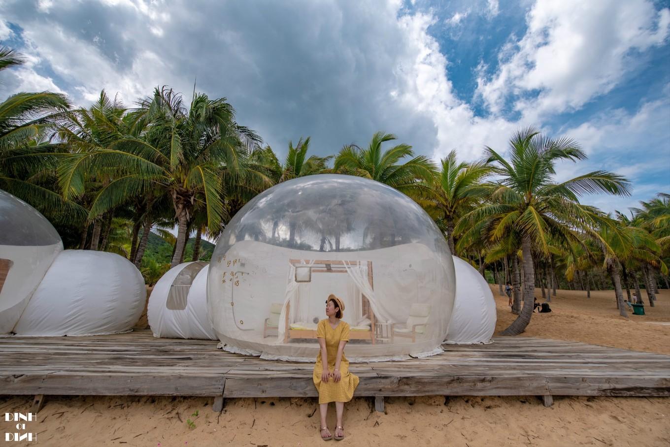 在白色教堂的旁邊有一個(gè)泡泡屋,朋友圈發(fā)出去后好多朋友問,這里能住不,看著是住不了的,只是一個(gè)拍照的擺設(shè),在這里住怕是要熱死吧,有空調(diào)都救不了的。