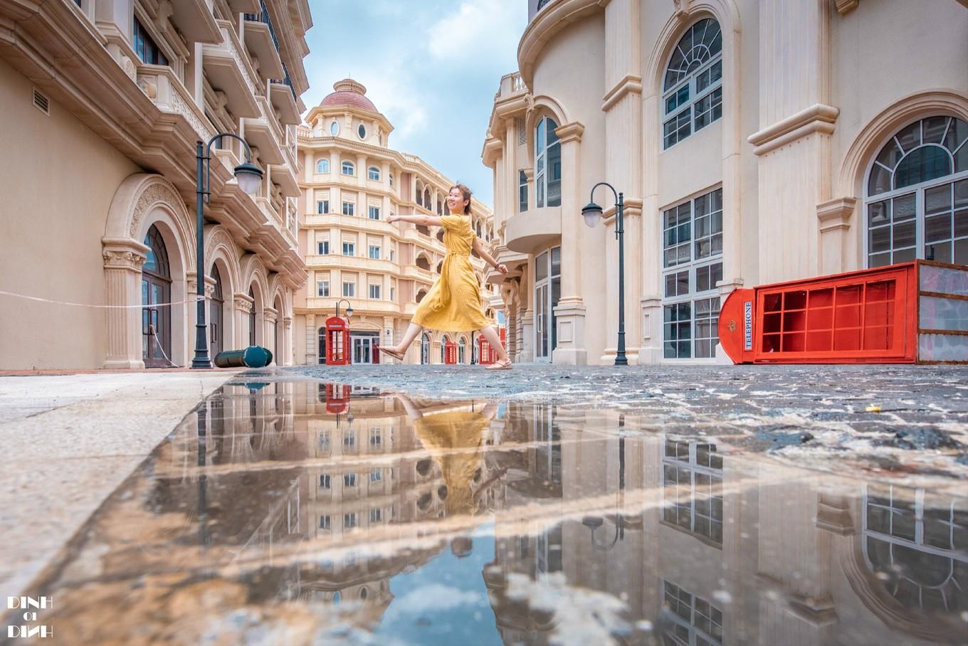 黃色的歐式建筑,可能是因?yàn)檎猩痰脑?,多?shù)都是還沒入駐的,所以到這里來的不是影樓的就是慕名前來的游客,路上擺著很多拍照用的小景,紅色的雙層公交和電話亭,能拍出倫敦的感覺。