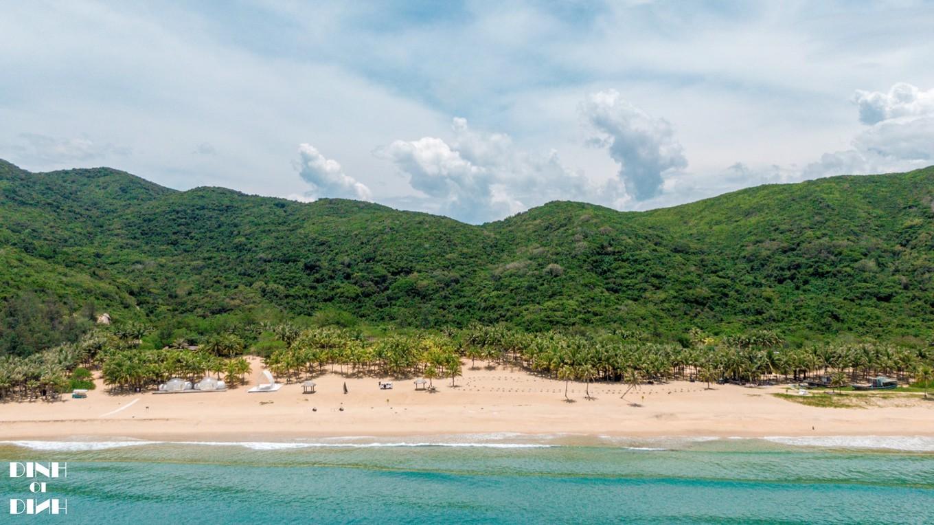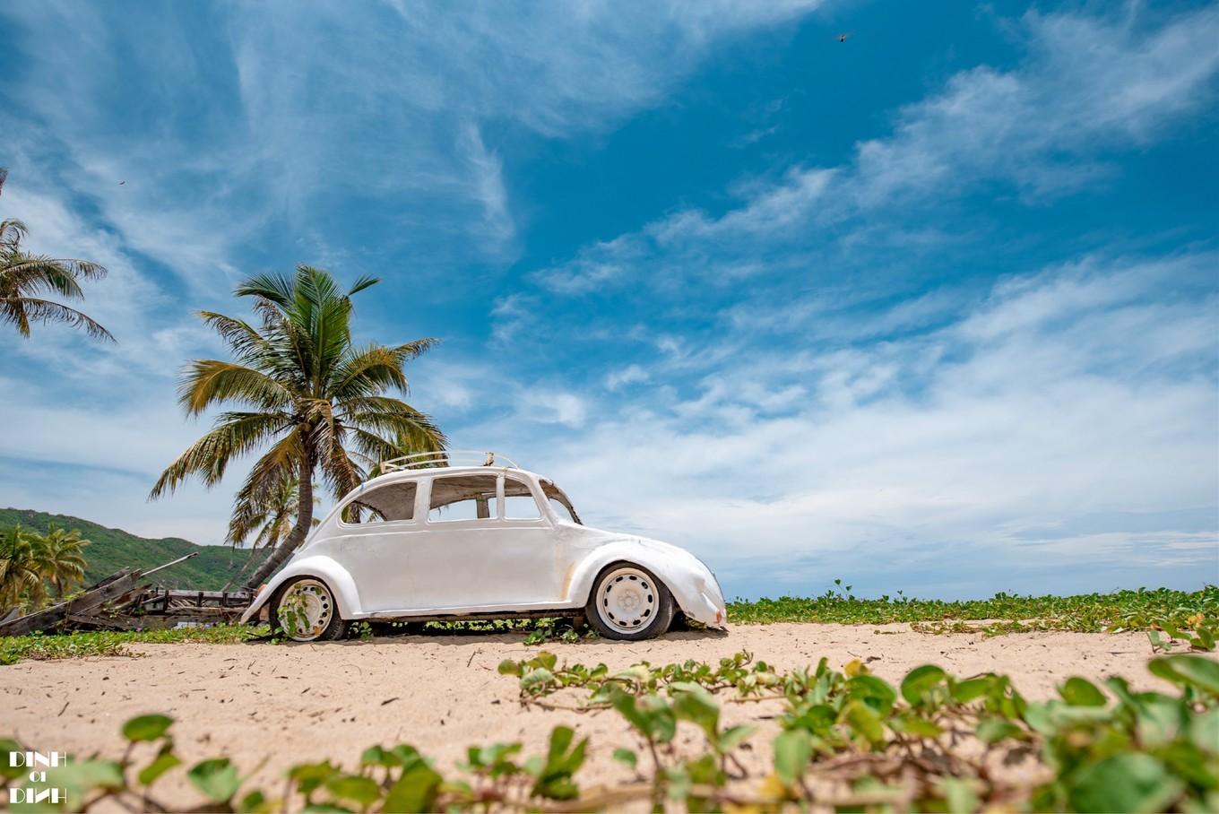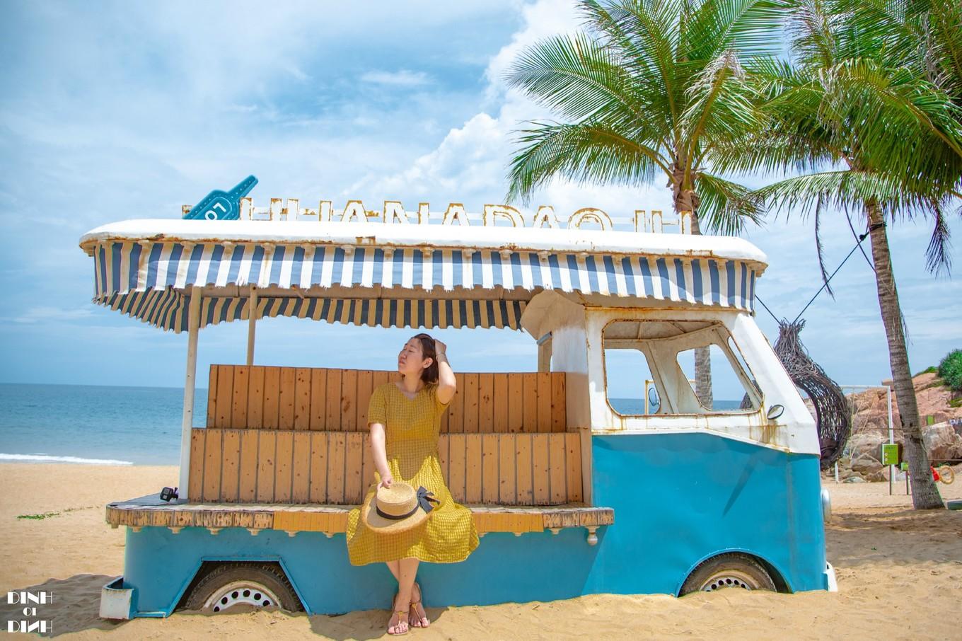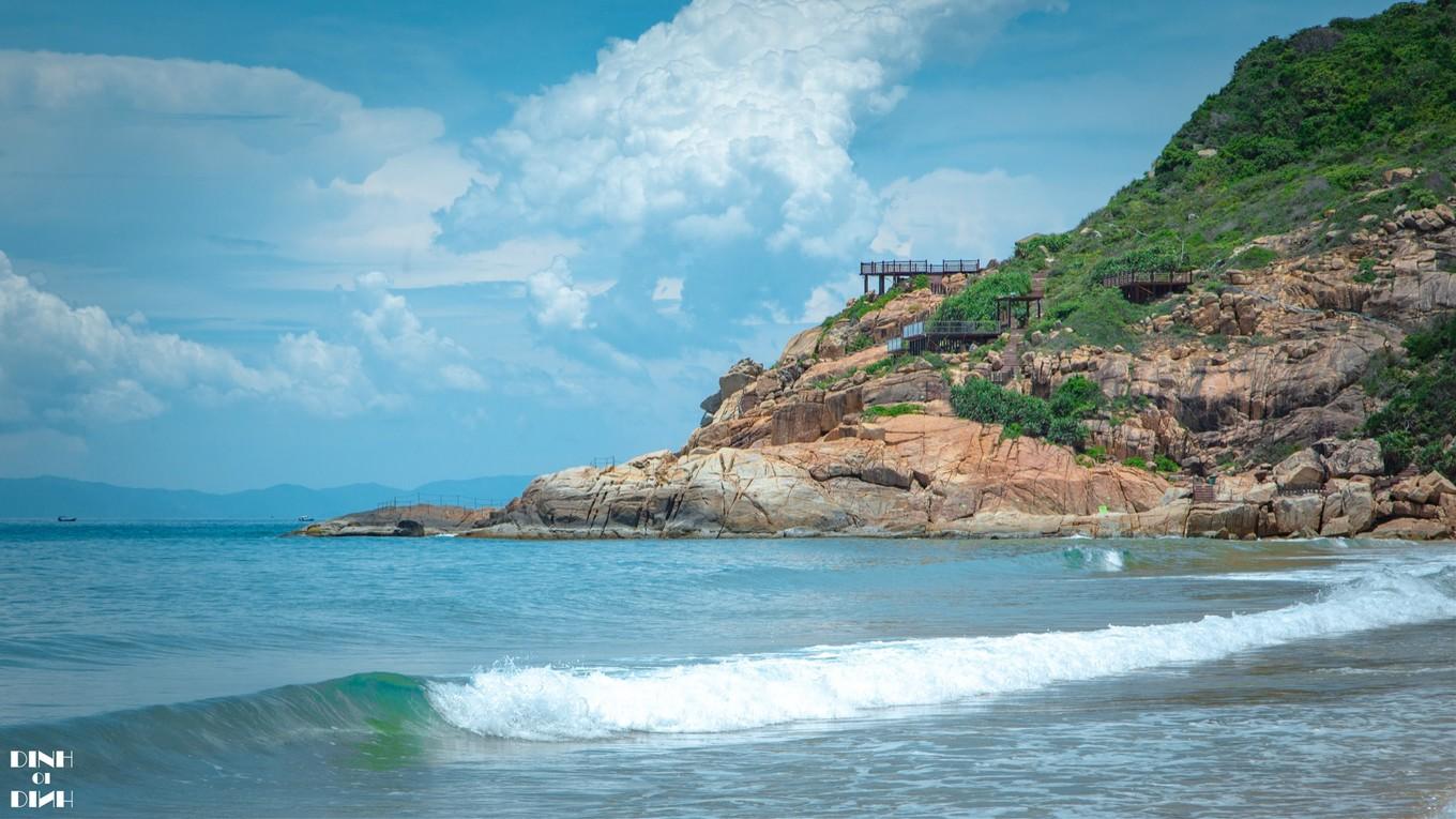 先來一張海灘的全景圖,呆呆島這片海,是一個(gè)月牙彎彎,風(fēng)浪不是很大,一些拍照的景都布置在沙灘上。