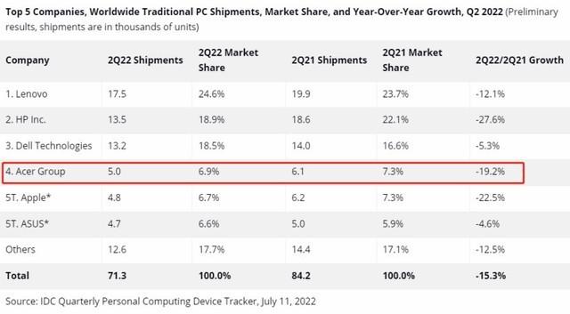 根據(jù)國際數(shù)據(jù)公司(IDC)公布的2022年第二季度PC出貨量報告來看,宏碁以500萬臺的數(shù)量和6.9%的市場份額占比令排名再次攀升至榜單第四位。這份優(yōu)異的答卷承載的并不僅僅是疫情所產(chǎn)生的紅利,還有宏碁在品牌力打造上所種下那一顆顆用戶關(guān)愛的種子,從側(cè)面佐證了用戶對宏碁品牌的認(rèn)可。