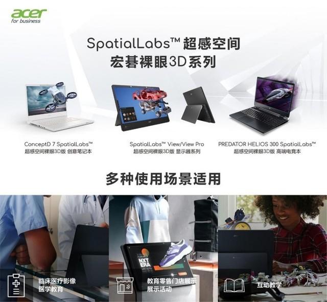 更重要的是,技術(shù)層面的創(chuàng)新突破并不局限于環(huán)保產(chǎn)品,在應(yīng)用于SpatialLabs超感空間裸眼3D領(lǐng)域的創(chuàng)新黑科技中,宏碁同樣率先確立多條產(chǎn)品線,從初在設(shè)計師本ConceptD系列應(yīng)用,發(fā)展到單獨的顯示器SpatialsLabs View系列,以及戰(zhàn)斧300裸眼3D電競本系列,以覆蓋全產(chǎn)品線的方式布局未來。
