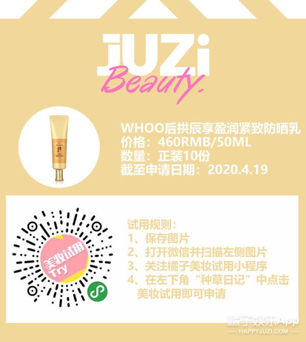 美妝福利時間又到啦!本期免費試用產(chǎn)品:Whoo后拱辰享盈潤緊致防曬乳