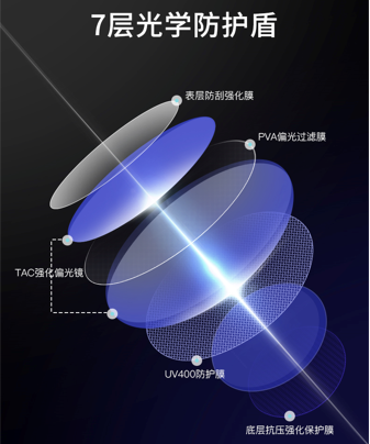 素湃眼鏡特意加了強化偏光層、偏光過濾膜,弱化刺眼的光線,戴上這副眼鏡,直視太陽都不覺得刺眼。