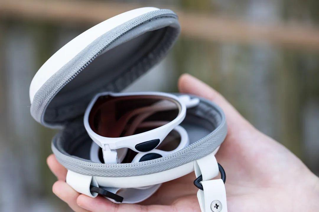 眼鏡是全折疊的,可以折成耳機盒大小,重量甚至不足25g,帶著基本無感。