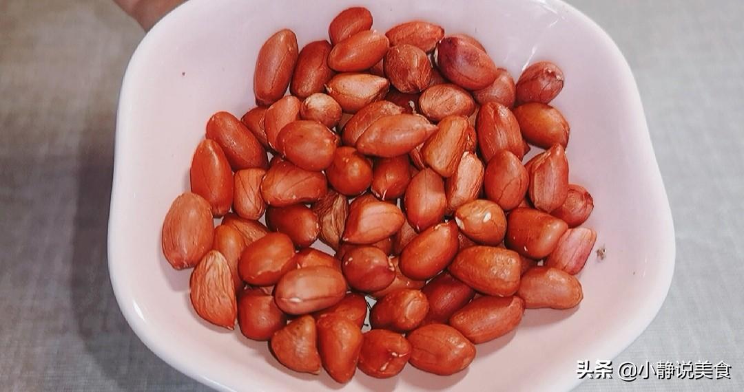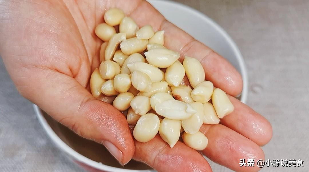 用開水燙過之后,手輕輕的一搓,花生皮就掉下來了,花生含有豐富的卵磷脂和鈣質,常吃花生對身體的好處的多