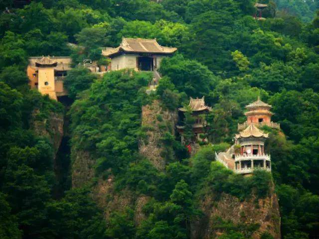 沒有喧鬧,只有蟲鳴鳥叫聲,在一個造型奇特的崖底下,佛寺和道廟排成一排,這樣的獨特景色在別的地方很難看到。