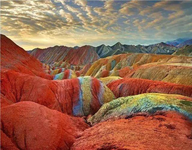 這里就是世界的一抹水色胭脂。置身于此,繽紛的色彩給視覺造成了極大的沖擊,各種褶皺與連綿起伏相映成趣,鎮(zhèn)魂攝魄!