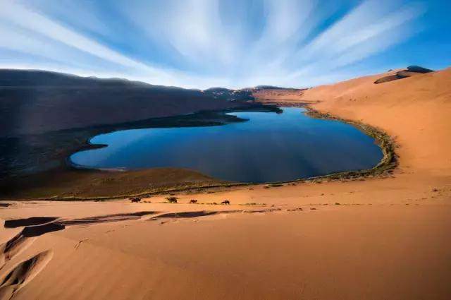 巴丹吉林沙漠是我國第三大沙漠,里面有世界高的沙山、蔚為壯觀的鳴沙區(qū)、星羅棋布的湖泊綠洲、生生不息的沙海神泉等等。