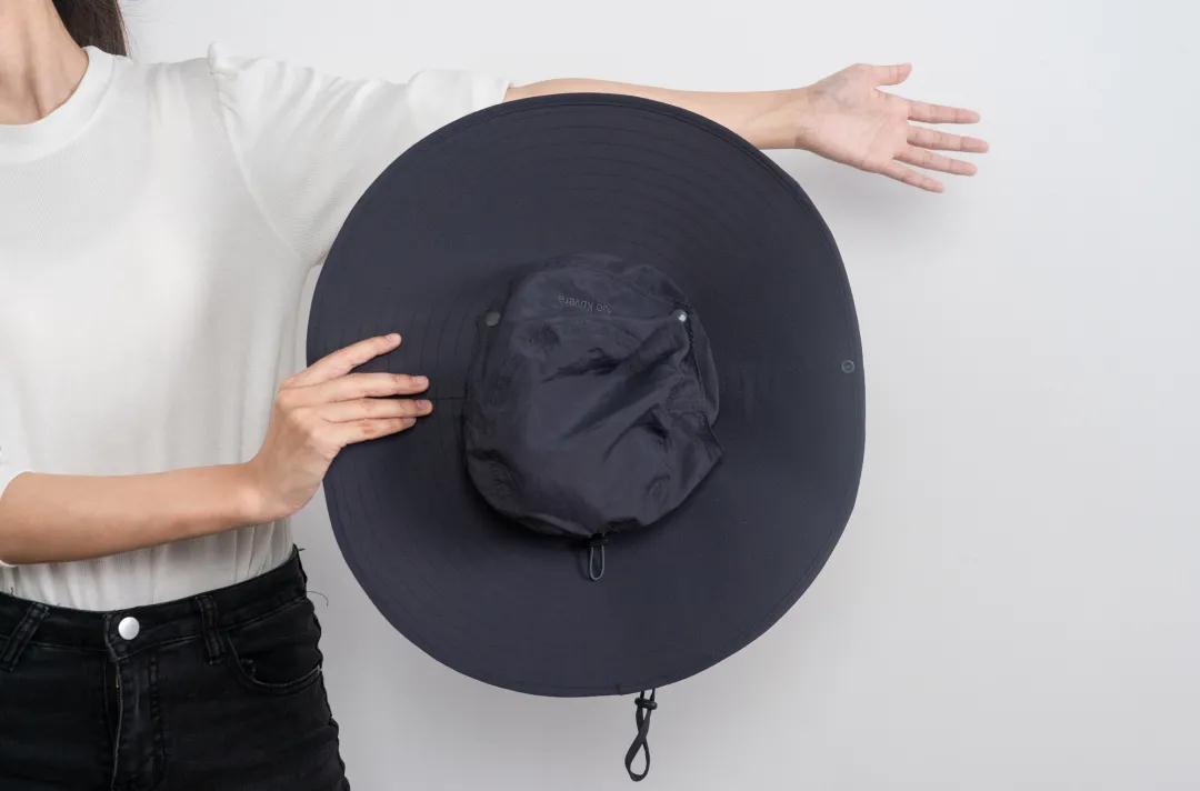 別看帽子尺寸這么大,帽檐柔軟可折疊,方便攜帶。