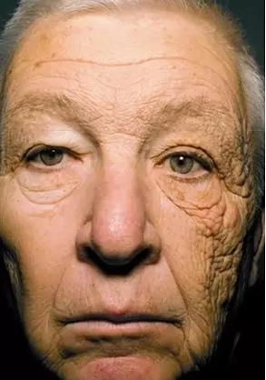 英國這位69歲的卡死司機(jī),28年駕車經(jīng)驗(yàn),左臉因?yàn)殚L時間受到陽光直射,呈現(xiàn)增厚、長皺紋的現(xiàn)象,這就是光老化。