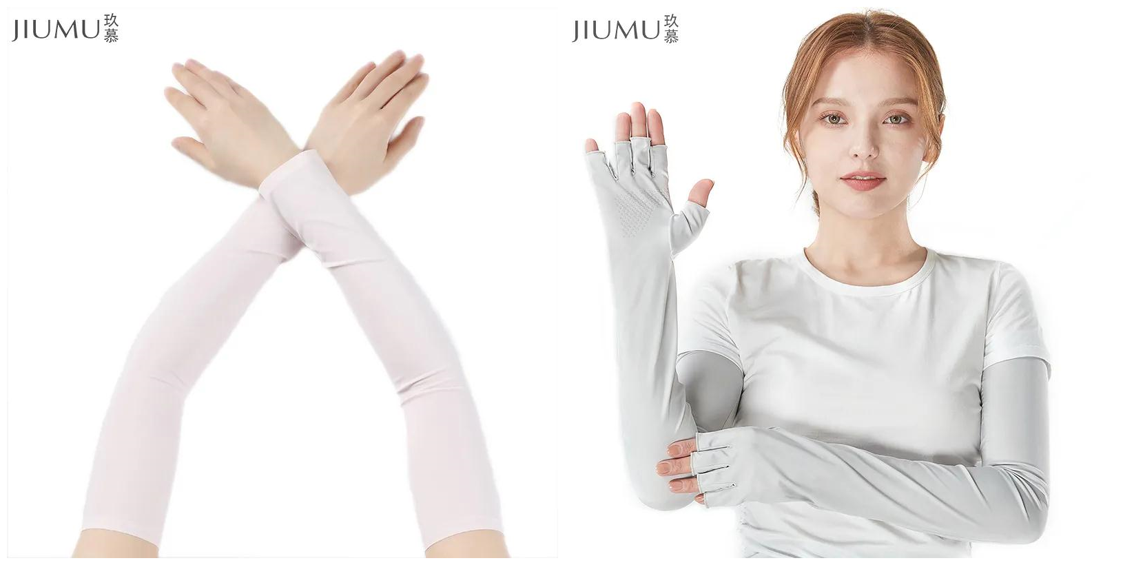 玖慕冰袖還貼心地推出了套指款,一根手指頭都不允許被曬黑,這工作,做得真的到位。