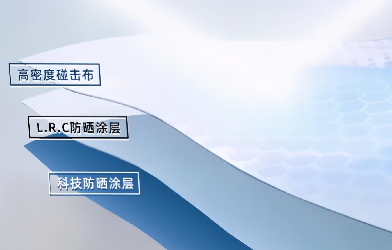 之所以防曬果這么好,是因?yàn)槟粗競阌昧?層面料,高密度碰擊布+ L.R.C 防曬涂層+科技防曬涂層,PDF 值達(dá)到 50+,比一些防曬霜還能打。