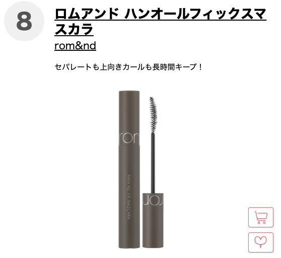 第八名 rom and纖長/卷翹睫毛膏