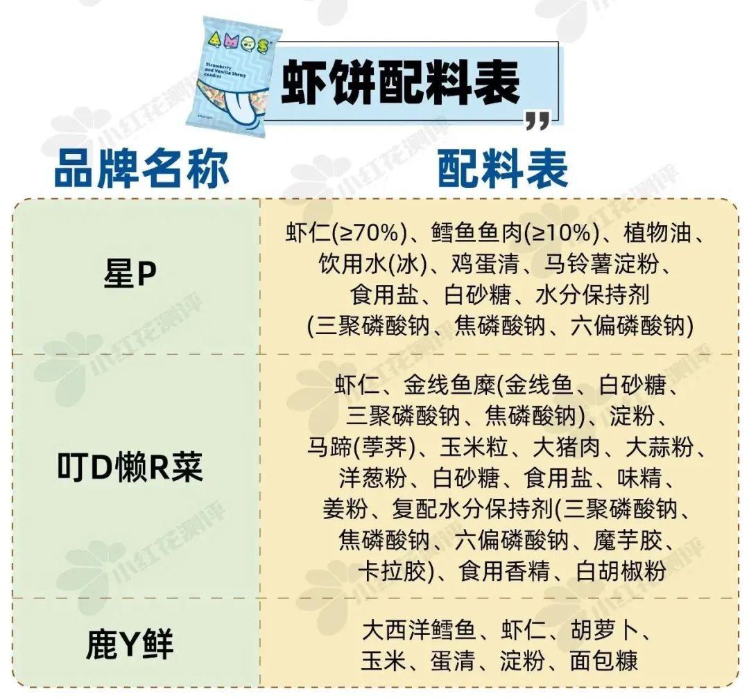 終花爸選擇配料表相對簡單,蝦肉添加量多,口感好的星P,送檢了重金屬鉛、無機砷、甲基汞。
