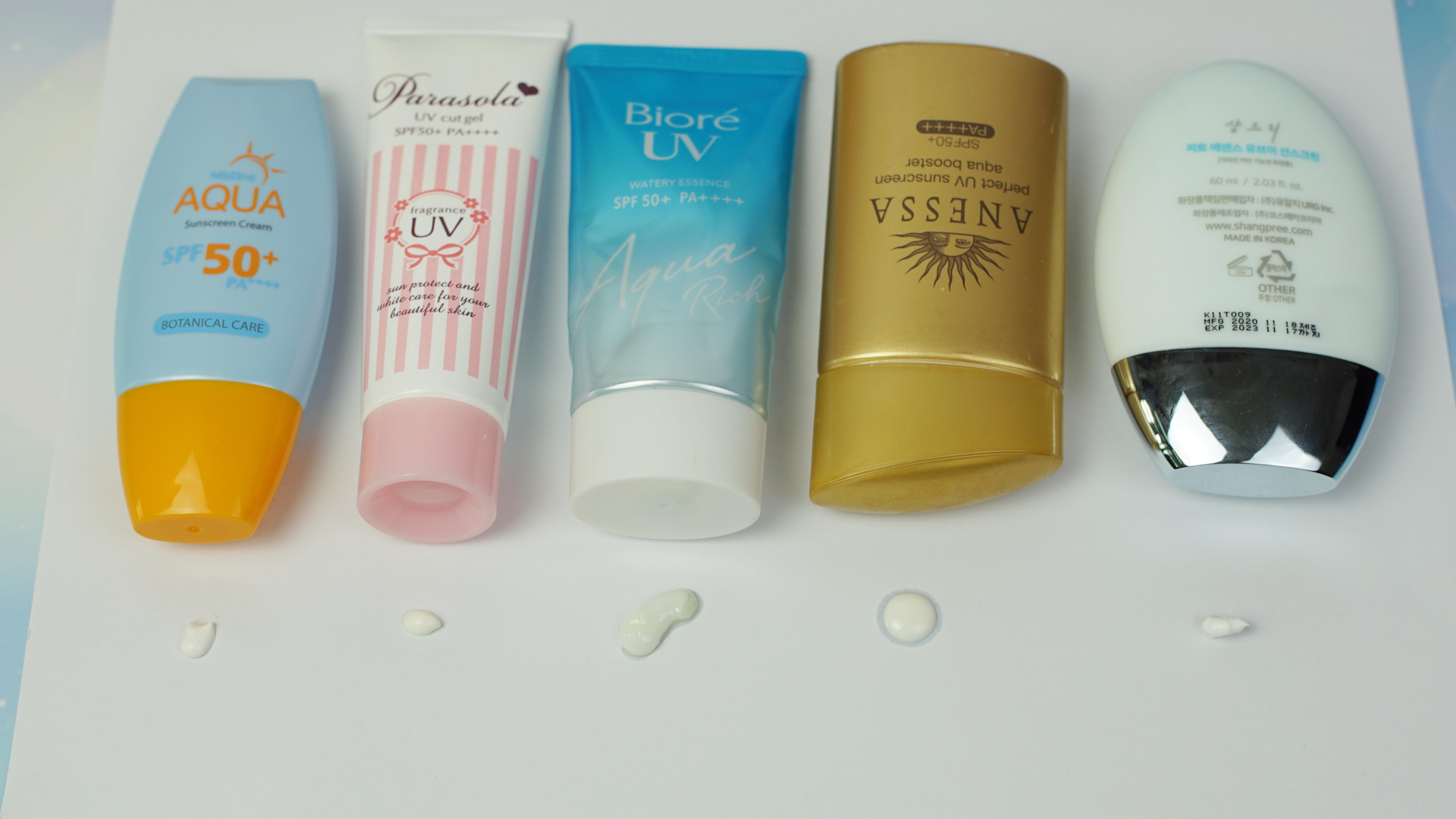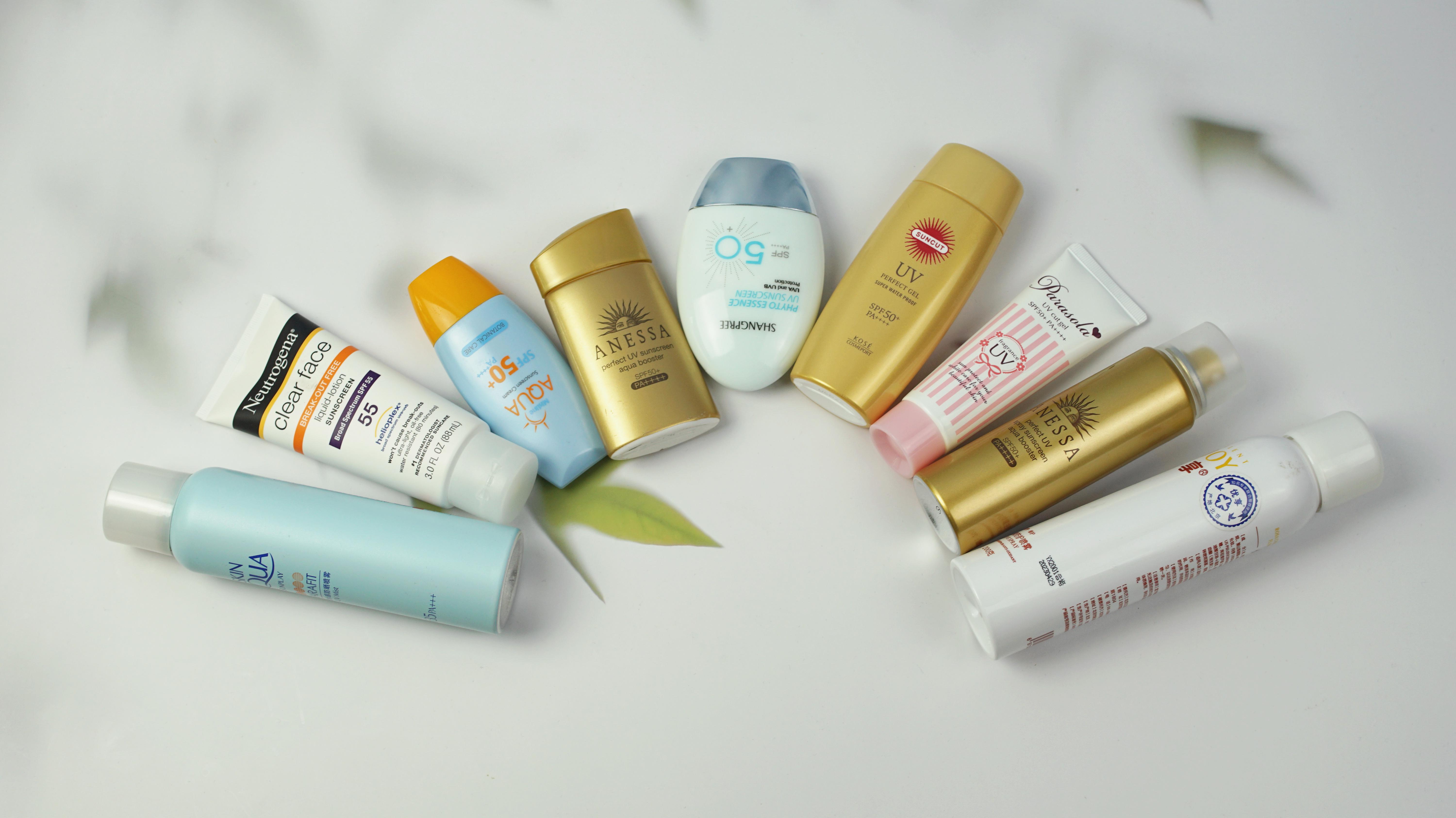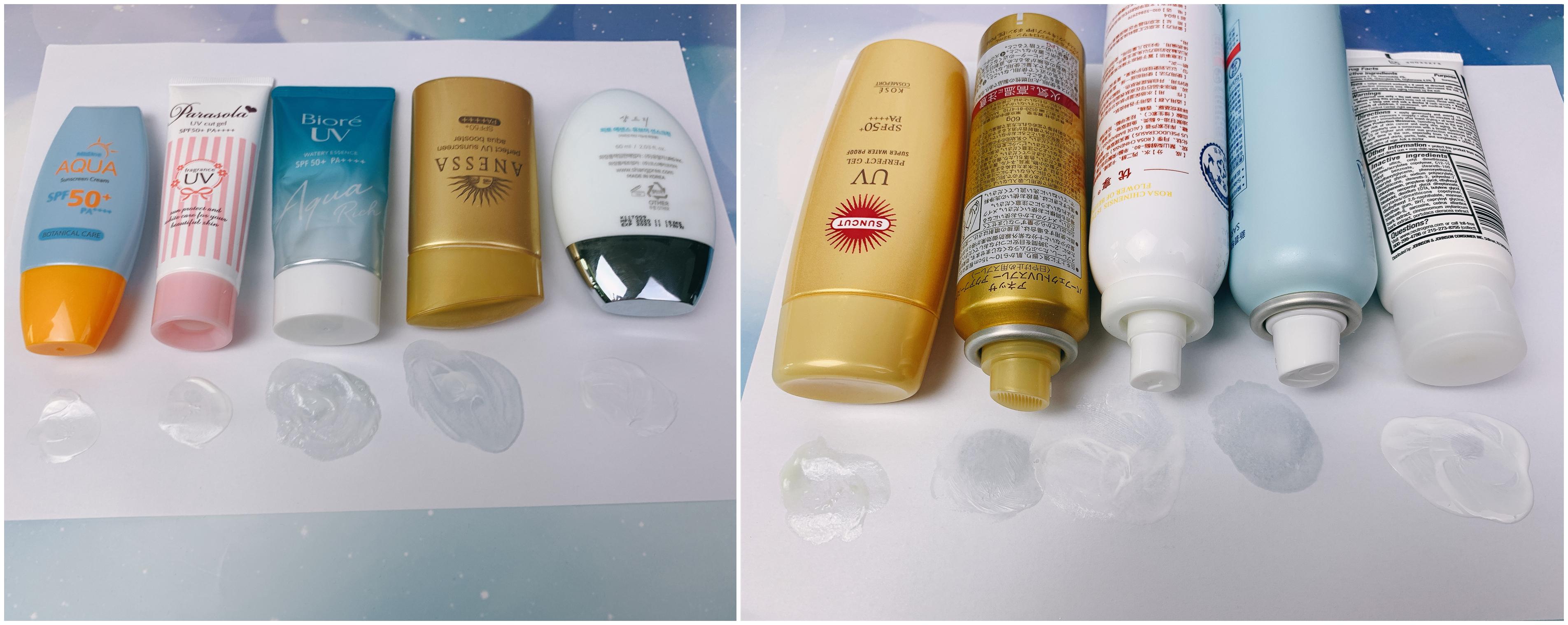 第二組為(左至右):高絲、安熱沙(噴)、優(yōu)享、曼秀雷敦、露得清。