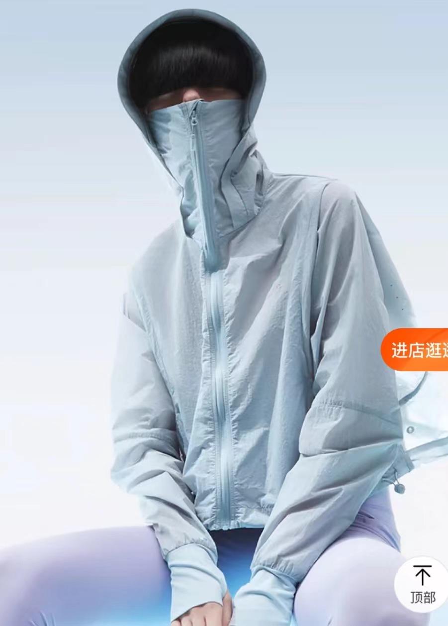 為了解決傳統(tǒng)防曬衣物容易悶熱不透氣的體感訴求,今年蕉內(nèi)在防曬衣新品上著重提到了運用涼感紗線,借助高科技等概念來為自身專業(yè)背書。針對防曬上可能存在的漏洞,他們?yōu)榉罆穹O計了加高的領口,以保護脖子不被曬到,防曬口罩則增高到眼角位置,防止眼部曬傷。