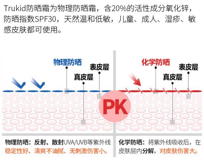 首先,Trukid是純物理防曬,對(duì)孩子的皮膚沒(méi)有傷害。