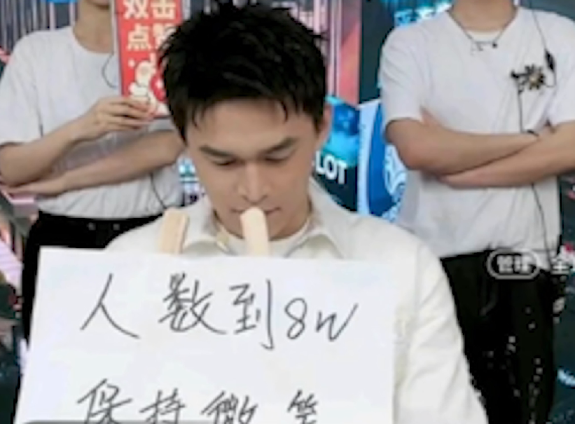 3萬只是輕輕松松就能達(dá)到的小目標(biāo),緊接著他又換了寫字板,“人數(shù)到5萬笑一下”,如果“人數(shù)到8萬”,他就會(huì)一直“保持微笑”。