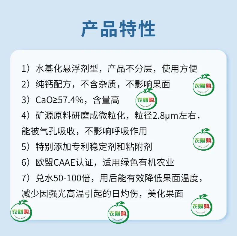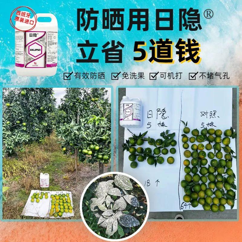 日隱防曬劑優(yōu)點:免洗果(有一定粘附作用,但非強(qiáng)粘性)、不影響光合作用、鈣含量高,且鈣可吸收、不影響呼吸作用、使用方便(噴霧器、風(fēng)炮機(jī)都可以用)。