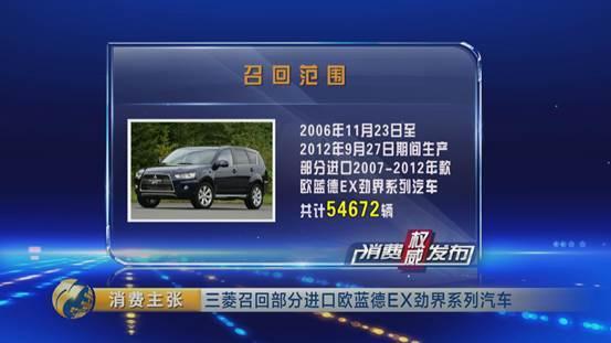 日前,三菱汽車銷售(中國)有限公司向質檢總局備案了召回計劃,將自2017年9月11日起,召回部分進口歐藍德EX勁界系列汽車共54672輛。