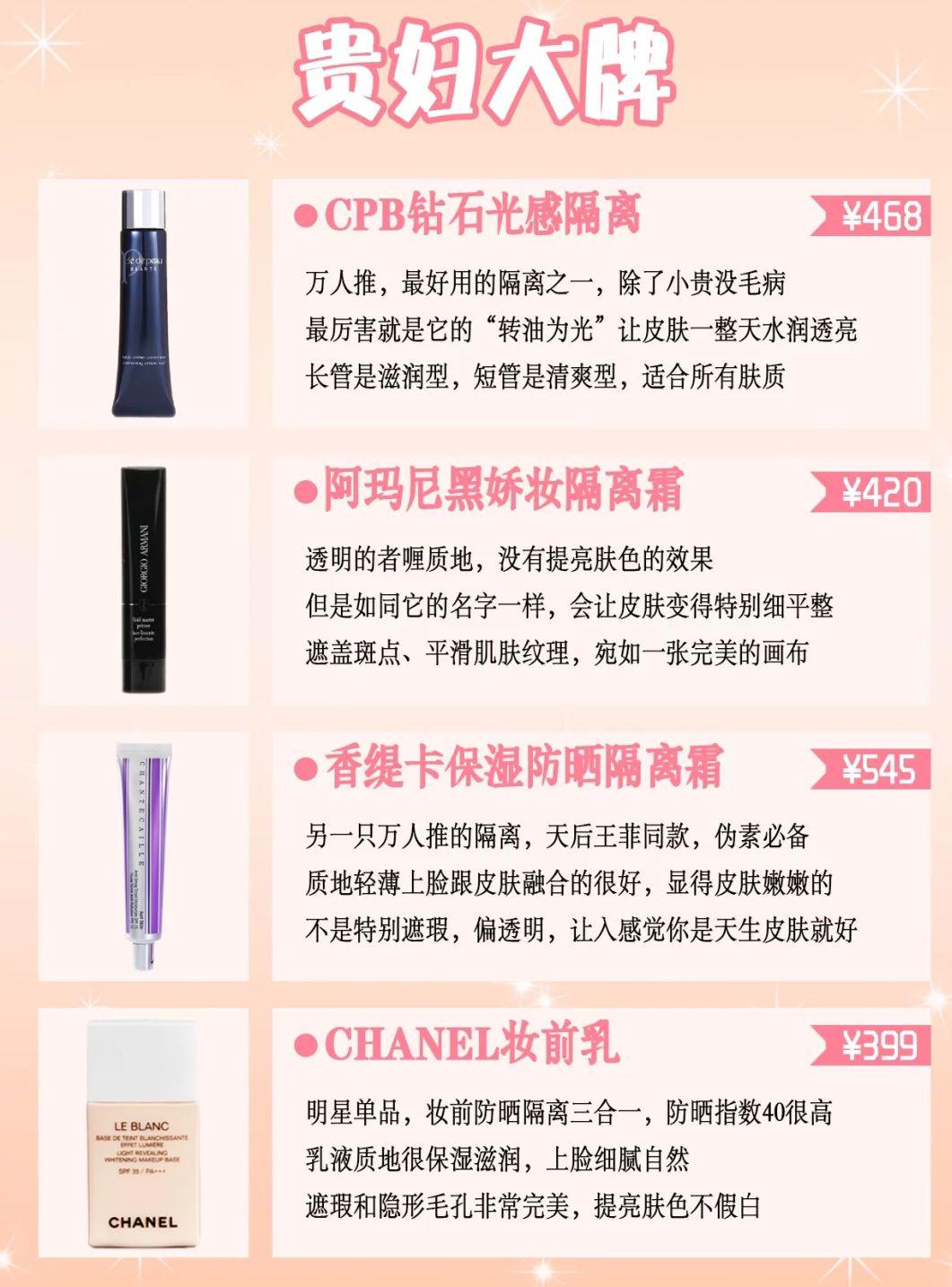 隔離霜和防曬霜其實是同種產(chǎn)品,只是叫法不同,如果隔離霜含有防曬的成分,那它就是一個防曬霜,如果連防曬成分都沒火達之器有,那它基本就沒有什么作用,因為隔離霜根本就沒有商家宣傳的能隔離空氣,臟東西的功。要問哪個品牌好呢,其實這個也不一定的,每個品增鄉(xiāng)采編黃牌都會有很好的產(chǎn)品的,只是適不適合自己的皮膚罷了,因此要根據(jù)自己的膚質(zhì)去選擇產(chǎn)品,而不是看品牌,貴的東西不一定好,好的東西底參歷也不一定貴,重要是要選擇合適自己的。整理了一些目前比較火的32款隔離霜妝前測評!以及一些關于隔離霜/妝前乳的干貨,給大家參考一下,覺得有用的記得點贊收藏哦!