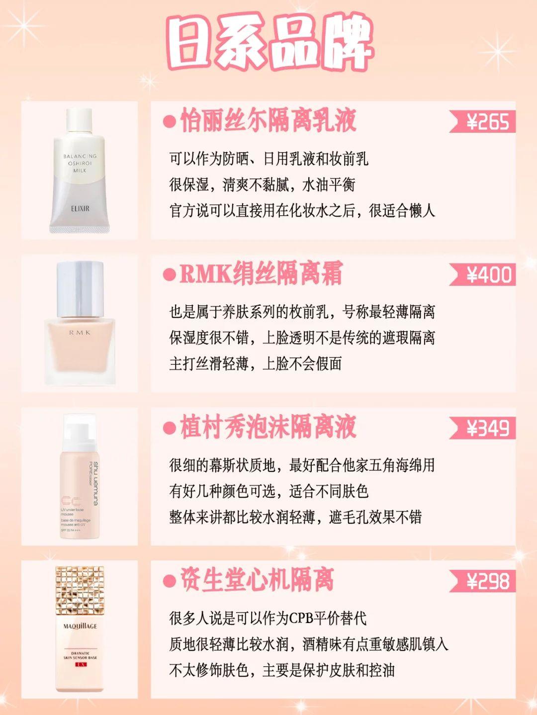 拓展知識:防曬霜妝前乳品牌