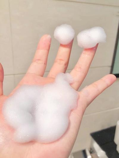 這款泡沫也是的細(xì)膩,聞起來(lái)有股中草藥的味道,很是舒心,清洗也很方便,沒(méi)有任何的假滑感。