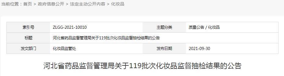 2021年河北省化妝品監(jiān)督抽檢檢驗(yàn)結(jié)果匯總表(第一批)