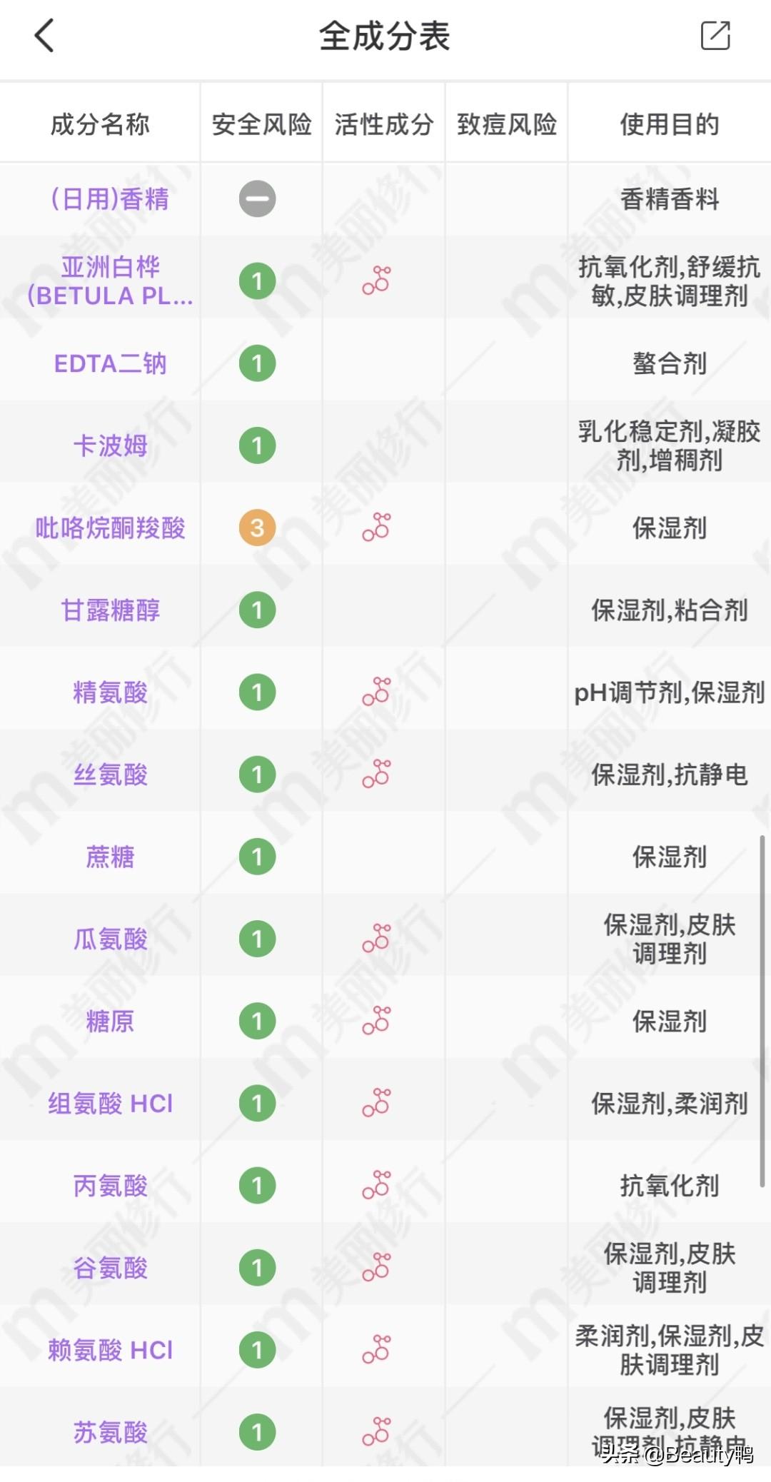 一共33種成分,其中的16種為活性成分。防曬的活性成分雖然都是化學(xué)防曬劑,但是已經(jīng)完全滿足對UVA和UVB的防護(hù),同時(shí)也有保濕功。
