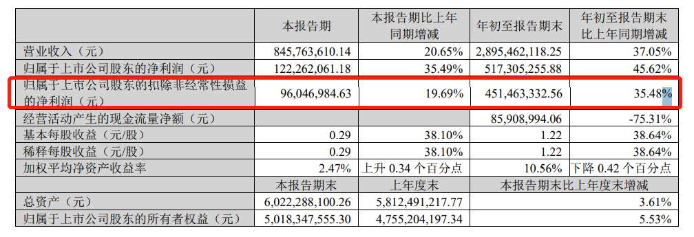 10月26日,貝泰妮發(fā)布三季度財報,前三季度公司營收28.95億元,同比增長37.05%,扣非凈利潤4.51億元,同比上升35.48%。