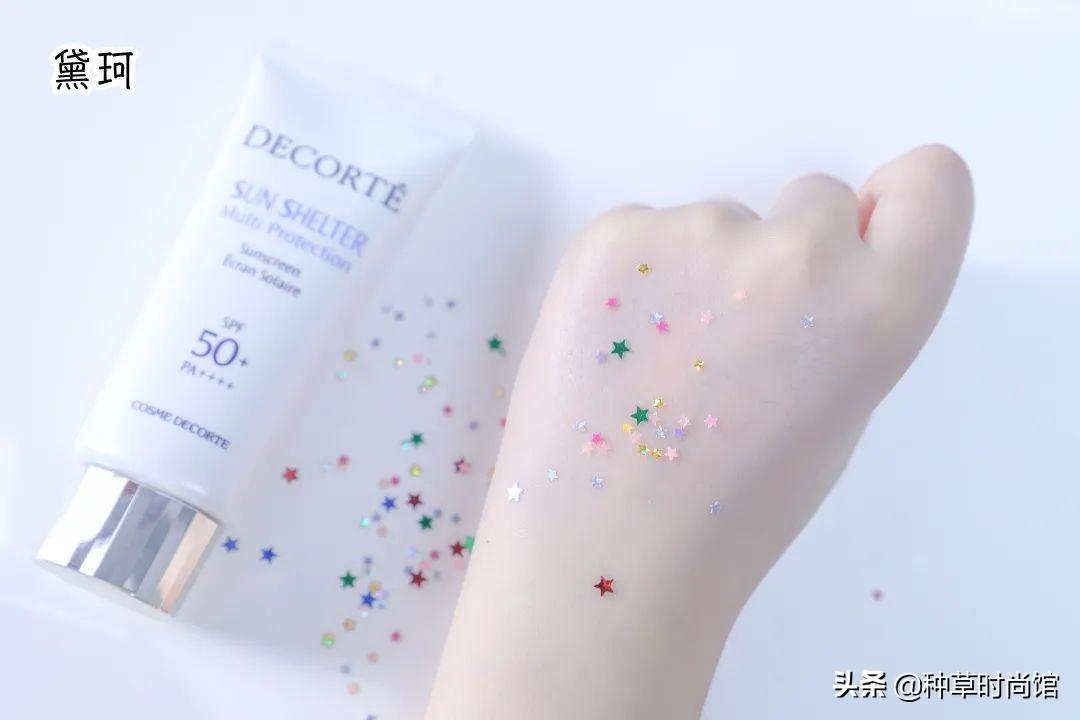 可以看到:安熱沙、怡思丁、歐萊雅沾取的亮片較少,膚感清爽。黛珂、蘭蔻、EltaMD防曬沾取的亮片都差不多,測評過關~
